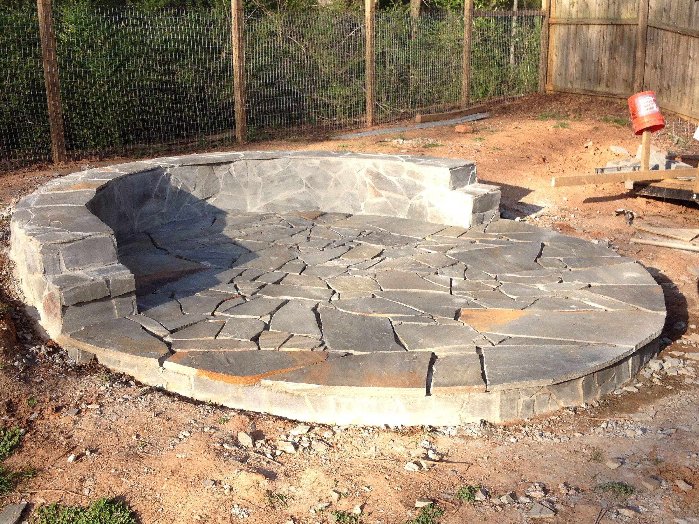 For a square or rectangle fire pit, temporarily lay out the first layer of concrete blocks for your design on the ground and check the layout for the square. Prepare the base by digging a hole between 6 and 12 inches deep. Some types of stone, masonry bricks, and compressed concrete can degrade or explode when exposed to the intense heat of a campfire. Couldn't have done this without my tile saw, skil 7 wet tile saw, $94.83 free shipping on amazon: Check spelling or type a new query. You will need the required fire pit tools such as 55 york blocks, 25 wall caps, two tubes of masonry adhesive, ten 50 pound bags of crushed rock, 6 50 pound bags of decorative rocks, and one metal fire ring. Simplistic stone path with a firepit center. Many types of stone can be suitable to make a fire pit, but to simplify your choice, home centers typically stock manufactured stone designed specifically for fire pits. We did not find results for: Large cinder block and stone firepit You can also create own concrete block fire pit using a few tools and materials. Steps to build cinder block fire pit. First determine the layout of the pit.